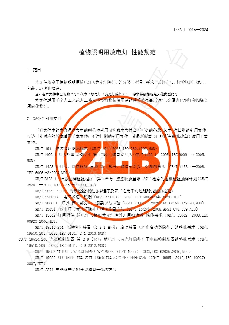 据全国团体标准信息平台消息,浙江省照明电器协会近日正式发布了T/ZALI 0016—2024《植物照明用放电灯 性能规范》团体标准。自今年5月10日起,该标准将正式实施。
