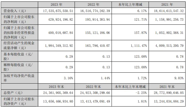 木林森4月18日披露2023年年报。2023年,公司实现营业总收入175.36亿元,同比增长6.17%;归母净利润约4.30亿元,同比增长121.71%;扣非净利润4.00亿元,同比增长157.88%;基本每股收益为0.29元。